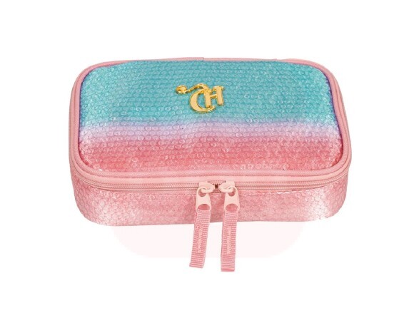 Além disso, o estojo tem fechamento em zíper e organizador interno com elástico, assim, deixando seus materiais muito mais organizados!